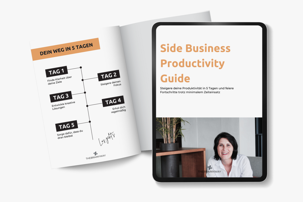 Hol dir meinen Productivity Guide für nebenberuflich Selbstständige für mehr Business-Fortschritt trotz 9-to-5 mit nur 3,5 Stunden pro Woche. Erhalte in 5 Tagen mehr Klarheit, Fokus & sichtbaren Ergebnisse.